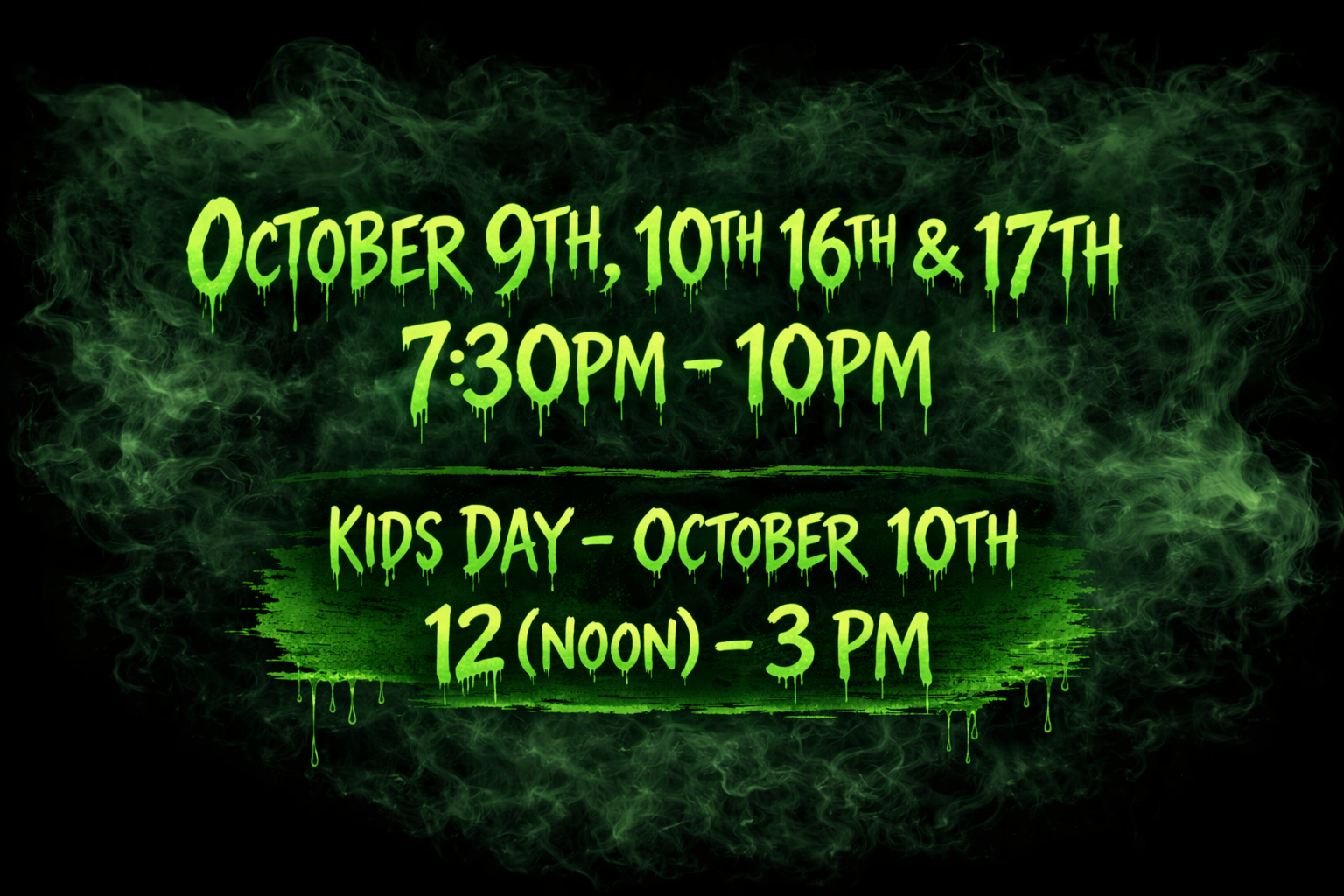 Time: Kids day form 2 PM - 5 PM on October 10th.